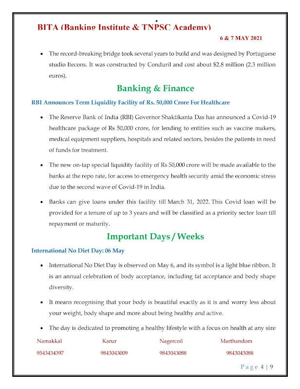CURRENT AFFAIRS 6 & 7 MAY 2021
